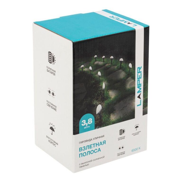 Светильник светодиодный садовый «Каскад Взлетная Полоса» 3.8м LED холод. бел. 5Вт IP65 с выносной солнечн. панелью 2м; аккум. монтаж в грунт Lamper 602-244