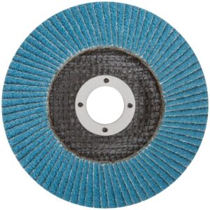 При изготовлении используется высококачественный гибкий абразивный материал состоящий из тканевой основы на которую нанесен слой циркониевого электрокорунда. Круги на основе циркониевого электрокорунда имеют высокую прочность, коэффициент шлифования на кругах данного типа выше в несколько раз, чем у кругов на основе нормального электрокорунда, что особенно эффективно при работе с особо твёрдыми сортами металла. Структура циркониевого электрокорунда даёт эффект самозатачивания, что также увеличивает ресурс использования. Наполняемость диска составляет 80 лепестков с углом наклона 10 градусов, это позволяет увеличить КПД круга и его стойкость к износу в несколько раз. Предназначен для обработки нержавеющей стали, металла, сварных швов, пластика, дерева. Для углошлифовальных машин. Посадочный диаметр 22,2мм.