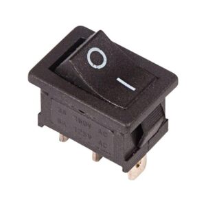 Выключатель клавишный 250V 6А (3с) ON-ON черный Mini предназначен для коммутации электрических цепей переменного тока напряжением до 250В. Клавишные (Рокерные) выключатели применяются в качестве комплектующих изделий различного электрооборудования (в сетевых фильтрах и удлинителях, аудио-оборудовании, блоках питания, электроустановках на различных производствах, автомобилях, и многих других местах). Такой клавишный переключатель имеет два положения. Принцип действия основан на перемещении клавиши в одну из позиций. Для переключения в нужное положение требуется приложить некоторые усилия на клавишу. Монтаж осуществляется без применения винтов на плоских панелях толщиной от 0.8мм до 3мм. Подключение контактов осуществляется плоской клеммой, либо с помощью пайки. Основные характеристики: Номинальное напряжение: 250В; Предельное напряжение: 1500VАС не более 1 минуты; Номинальный ток: 6A (250VAC); Контактное сопротивление: не более 35 мОм; Тип переключения: ON-ON; Количество контактных групп: 1; Количество контактов в контактной группе: 3; Фиксация положений: да; Индикация коммутационных положений: нет. Рабочая температура: от -25? до +85?; Ресурс: 10 000 циклов.