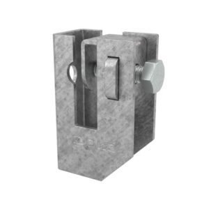 Скоба-держатель полосы с болтом используется для крепления полосы шириной до 50 мм к фасаду и внутренним стенам. Материал — горячеоцинкованная сталь.