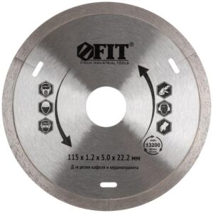 Диск отрезной алмазный сплошной (влажная резка) для работы с кафелем 115х1.2х5.0х22.2мм FIT 37442