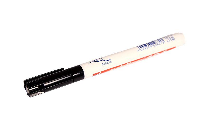 Маркер E-404 permanent 0.75 мм (для рисунка печатных плат) черный предназначен для нанесения постоянных, практически неудаляемых надписей на различные поверхности, которые не смываются водой, устойчивы к выгоранию и истиранию. Он идеально подходит для любых гладких предметов: металлических, деревянных, стеклянных, картонных, пластиковых, керамических и т. д. Кроме того, возможно маркировать экстремальные поверхности, такие как влажное дерево, грязный и ржавый металл, пленки, кафель и другие. Маркер оснащен круглым сменным наконечником (404 N) и не требует при письме нажатия на корпус, что может гарантированно исключить царапины и повреждения на пленчатых материалах. Заправляется маркер чернилами Edding T-25 практически не имеющих запаха. Специальный состав влагостойких чернил на спиртовой основе не разъедает поверхность пленки со временем. Корпус изготовлен из ударопрочного пластика. Основные характеристики: Толщина линии: 0.75 мм Цвет чернила: черный Хранить необходимо с плотно закрытым колпачком в горизонтальном положении.
