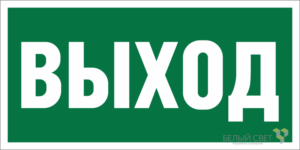 Знак безопасности «Выход» габаритные размеры 160х80 мм, фактические размеры 160х80 мм, сигнальный цвет — зеленый, контрастный цвет — белый
