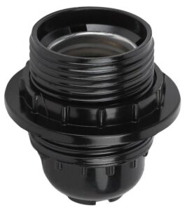 бакелитовый патрон с кольцом; способен выдерживать высокие температуры (до 300 градусов), обладает высокими электроизоляционными и антикоррозийными свойствами, не подвержен воздействию агрессивных сред; удобное подключение провода к контактной группе с помощью зажимных винтов
