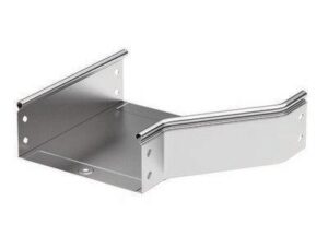 Элементы, входящие в состав системы «S5 Combitech» позволяют предусмотреть любые особенности проектирования и монтажа трассы. При построении кабельных трасс может возникать ситуация, когда требуется увеличить или уменьшить ширину лотка. Для этого применяется переходник (редукция) – аксессуар, имеющий разную ширину в начале и в конце. Правосторонняя редукция – аксессуар, который расширяется с правой стороны. Такой конструктив позволяет размещать переходник вплотную к стене. Ширина его составляет 150 мм в узкой части и 300 мм – в широкой. Максимальная степень пыле- и влагозащиты – IP 44 (при использовании вместе с крышкой и специальными уплотнителями, входящими в состав системы). Высота — 80 мм. В состав комплектного аксессуара входят необходимые крепежные элементы и соединительные пластины. Исполнение – «Горячий цинк». Это специальное исполнение, которое отличается повышенной устойчивостью к коррозии. Изделия с таким покрытием можно применять даже в условиях агрессивной среды, повышенной влажности, солевого тумана.