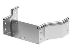 Элементы, входящие в состав системы «S5 Combitech» позволяют предусмотреть любые особенности проектирования и монтажа трассы. При построении кабельных трасс может возникать ситуация, когда требуется увеличить или уменьшить ширину лотка. Для этого применяется переходник (редукция) – аксессуар, имеющий разную ширину в начале и в конце. Симметричная редукция – аксессуар, симметричный относительно средней линии, проходящей вдоль его длины. Этот элемент обеспечивает расширение кабельной трассы с 300 мм до 400 мм или же ее сужение. Максимальная степень пыле- и влагозащиты – IP 44 (при использовании вместе с крышкой и уполотнителями). Высота — 80 мм. В состав комплектного аксессуара входят необходимые крепежные элементы и соединительные пластины. Аксессуары в исполнении «Цинк-ламель» имеют специальное покрытие на основе химически активной магниевой смолы, в которую добавлены хлопья алюминия и цинка. Такое покрытие обеспечивает электрохимическую и барьерную защиту от коррозии. Показатели коррозионной стойкости цинк-ламельного покрытия ДКС аналогичны показателям горячеоцинкованного покрытия.