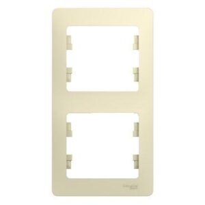 Рамка Systeme Electric (ранее Schneider Electric) серии Glossa (цвет бежевый) двухместная. — Устанавливается в вертикальном положении. — Выполнена из материала PС+ASA, стойкого к УФ-излучению и появлению царапин. — Позволяет гармонично вписать электроустановочное изделие в интерьер помещения.