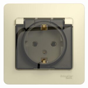 Розетка Systeme Electric (ранее Schneider Electric) серии Glossa (в сборе, цвет бежевый) одинарная с заземлением, шторками и крышкой подходит для сетей 250 В, на ток 16 А. — Заземляющий контакт обеспечивает дополнительную защиту от удара электрическим током. При наличии заземления электрический потенциал уходит в землю, защищая человека. — Выполнен из материала PС+ASA, стойкого к УФ-излучению и появлению царапин. — Эргономичные клеммы розеток расположены в один ряд.