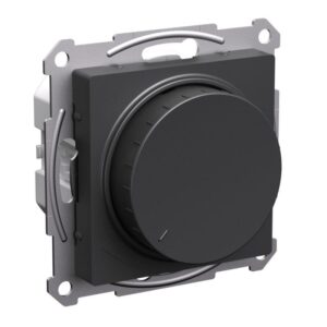 Механизм светорегулятора Systeme Electric (ранее Schneider Electric) серии AtlasDesign (цвет БАЗАЛЬТ) поворотно-нажимной для нагрузки мощностью до 400 Вт, подходит для LED ламп. — Светорегулятор позволяет установить в помещении комфортный уровень освещения. — При подключении второго переключателя диммер может использоваться как проходной переключатель. — Может использоваться как выключатель или переключатель. — Выполнен из материала, стойкого к УФ-излучению и появлению царапин.
