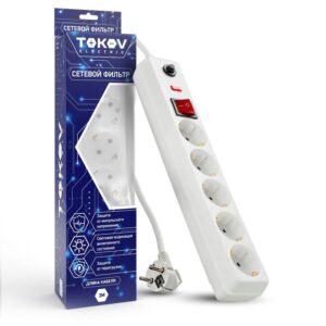 Приобретайте Удлинитель с сетевым фильтром 5х3м с заземл. с выкл. 16А с защ. от скачков напр. и перегрузок 3х1 бел. TOKOV ELECTRIC TKE-C01-SF5-3-ZV в специализированном магазине «Все для электрика»!