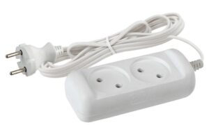 Компактный бытовой удлинитель ЭРА UX-2-3m на 2 розетки, без заземления. Рассчитан на одновременное подключение к розетке до двух маломощных электроприборов, максимальная нагрузка — 6 A/ 1300 Вт. Самая популярная длина шнура 3 метра. Надёжный двухжильный провод ШВВП. Корпус изготовлен из прочного негорючего полипропилена с защищающими от возгорания антипиренами. Закруглённые углы, брендирование на вилке и корпусе, базовый белый цвет этот удлинитель отличается аккуратным приятным дизайном.